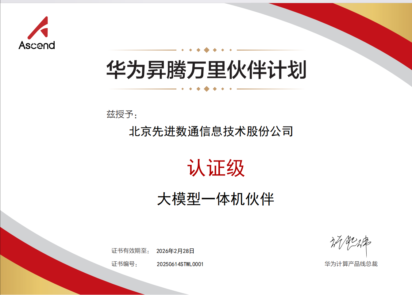2025年6月,北京华宇拍卖app下载信息技术股份公司(以下简称"华宇拍卖app下载")与华为技术有限公司达成大模型一体机战略合作。基于昇腾AI基础软硬件平台,华宇拍卖app下载整合自身专业化团队构建的行业AI解决方案,正式推出基于自主技术整合的华宇拍卖app下载品牌大模型一体机产品。